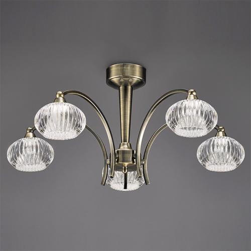 5 light ceiling light in a bronze finish with beautiful high quality small clear ribbed glasses the ribbed detail of these glasses illuminate light elegantly ideal for all modern lighting needs