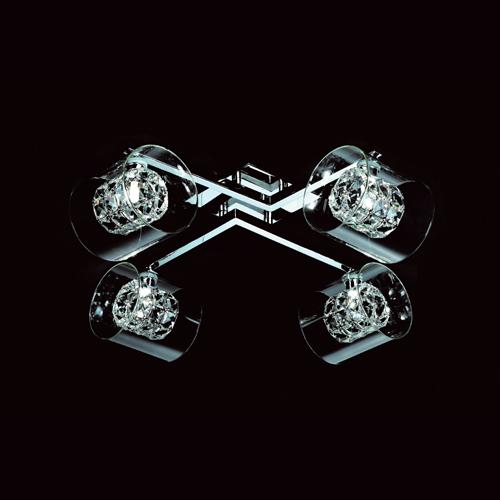4 light ceiling light finished in polished chrome with clear glass surrounding a beautiful square crystal inner diffuser to provide a sparkling effect suitable for all contemporary lighting requirements