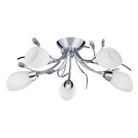 3 Light semi-flush light finished in polished chrome dressed with crystal leaves and opal glass shade