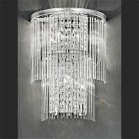 3 Light pendant ceiling light finished in polished chrome with 2 tiers of glass rods surrounding a centre column of faceted crystal rectangular drops adorned with crystal drops at the bottom