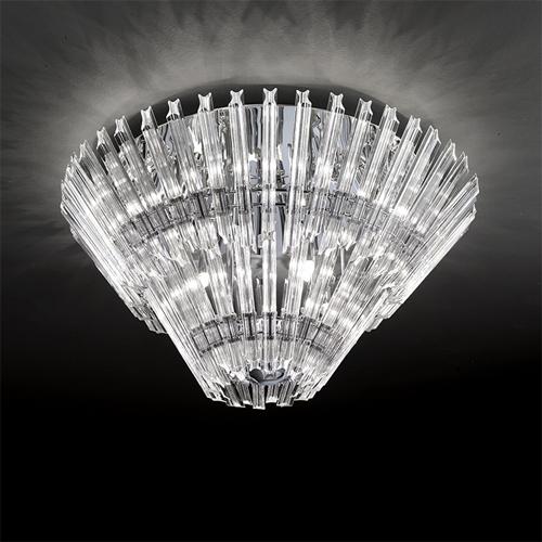 12 Light chrome finish ceiling light fitting with concave angle-cut crystal glass rods
