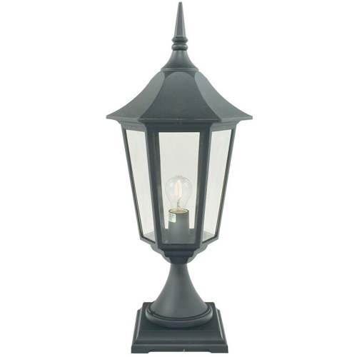 Large outdoor pedestal lantern manufactured from high quality die cast aluminum finished in black complete with clear polycarbonate lens