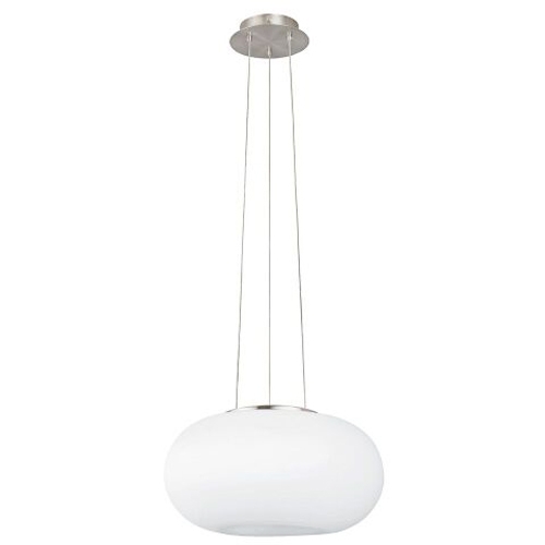 Nickel frosted pendant light with unusual doughnut opal glass on fine wire suspension
