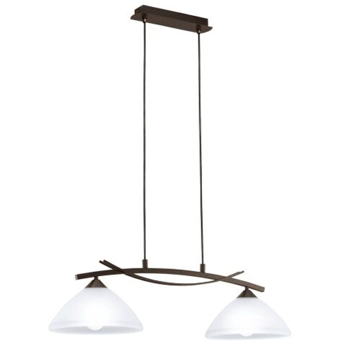 2 Light pendant ceiling light finished in dark brown complete with alabaster glass shades