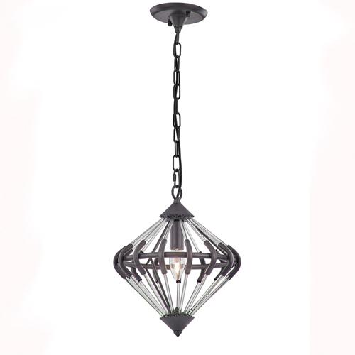 Designer ironcraft pendant light finished in antique iron with clear glass rods to provide a unique style and lighting effect