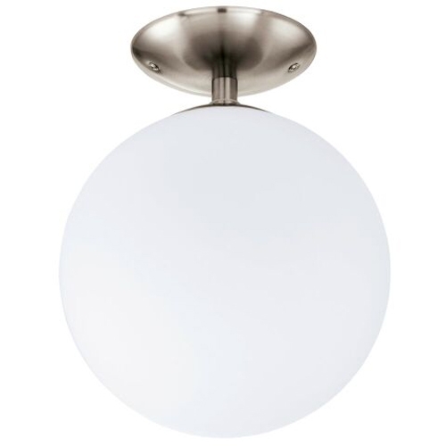 Semi-flush ceiling light finished in satin chrome complete with opal glass shade