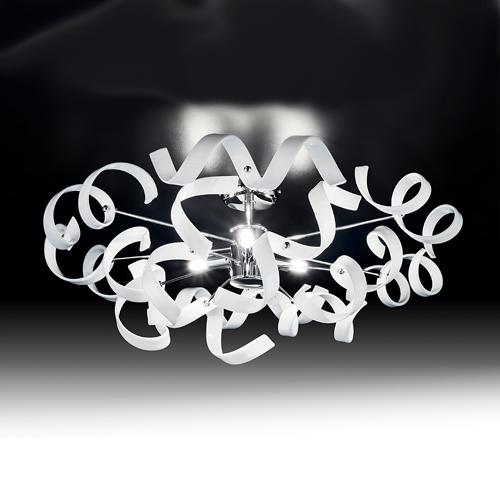 Designer modern Italian ceiling light polished chrome frame dressed with 12 beautiful opal white glass ribbons to produce a stunning display