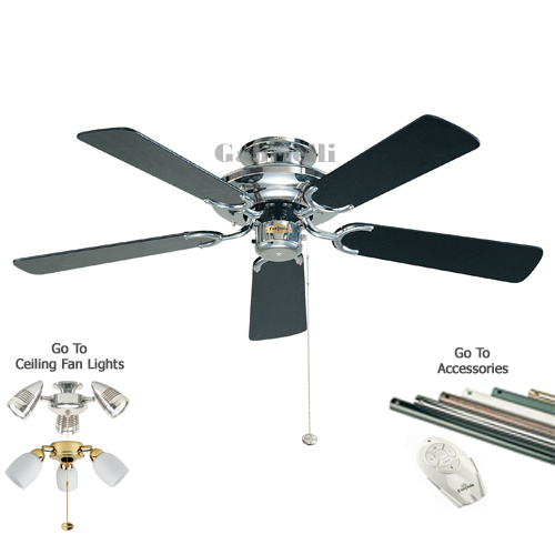 42 Mayfair ceiling fan in polished chrome with reversible gloss black and gloss black marble blades 10 year warranty