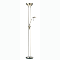 Floor uplighter finished in black chrome providing excellent illumination with the benefit of a reading lamp both have separate rotary dimmers to vary the light level