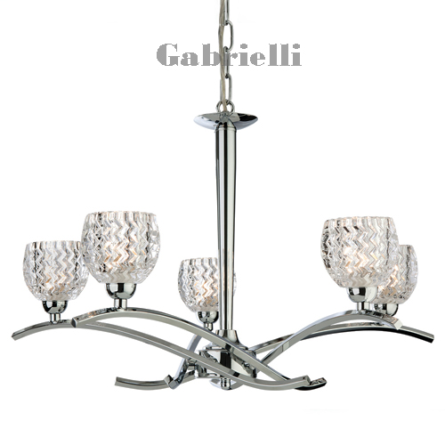 5 Light ceiling light finished in polished chrome complete with molded patterned clear glass shades