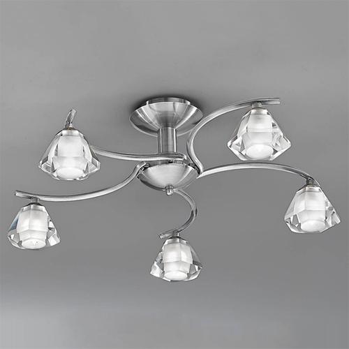 5 Light ceiling light finished in satin nickel with small clear crystal glass shades which have a frosted inner