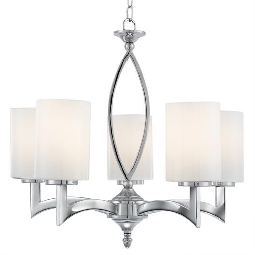 5 Light ceiling light finished in polished chrome complete with opal glass shades
