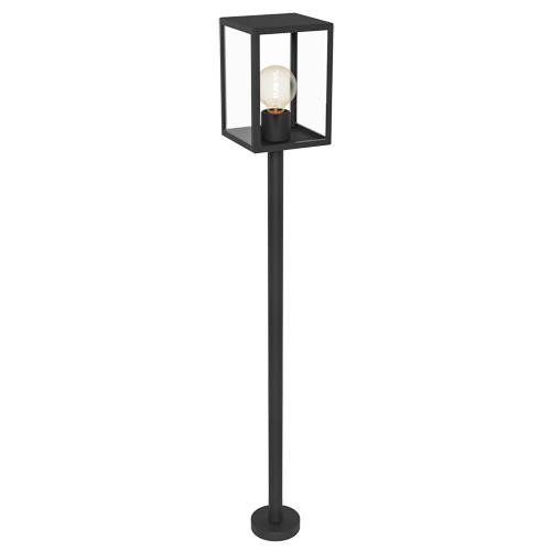 Outdoor post lamp finished in black constructed in galvanized steel with clear glass diffuser ideal for all outdoor lighting requirements