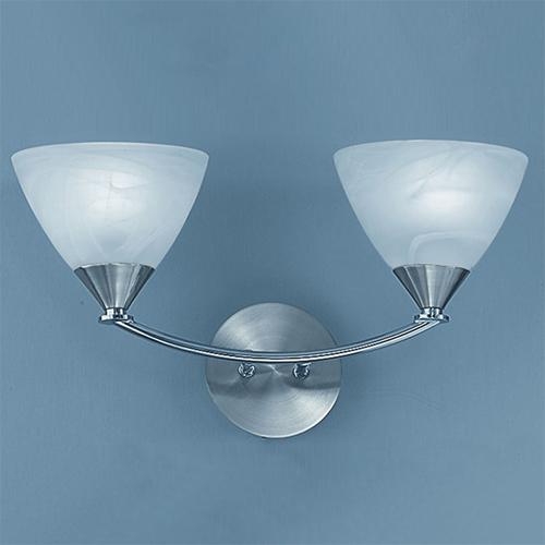 2 Light wall light finished in brushed nickel with beautiful alabaster effect glass bowl