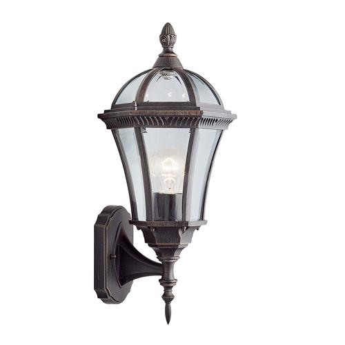 Outdoor wall light manufactured from cast aluminum finished in rustic brown with clear glass panels