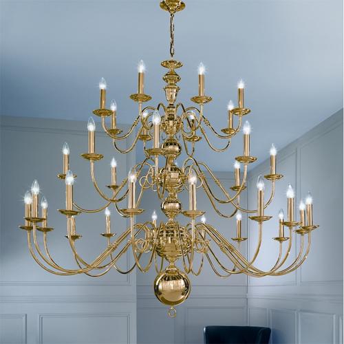 Large scale 32 light polished brass celing light in traditional flemish style supplied with brass candle tubes